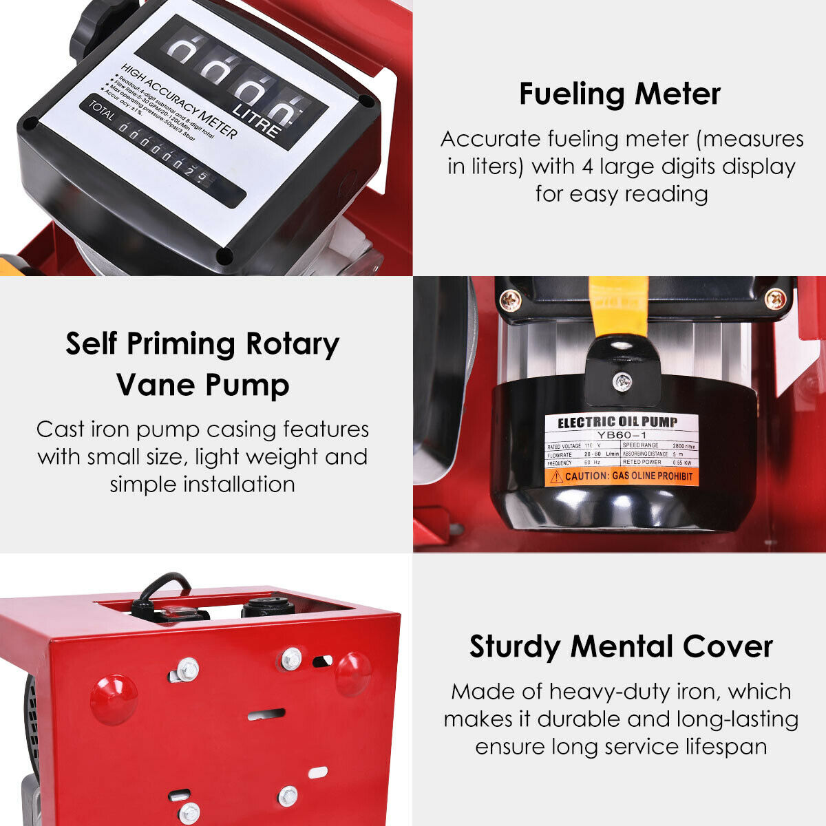 Función autocebante: esta bomba diésel puede aspirar aceite automáticamente, ahorrándole tiempo y esfuerzo.